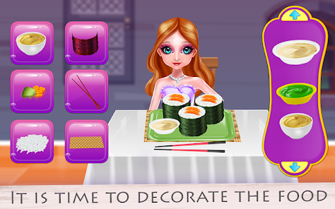 Bị bắt bởi một trong những trò chơi nấu ăn này, nơi bạn có thể biết làm thế nào một món ăn ngon được làm và những thành phần bạn nên sử dụng cho nó. Lần này bạn có cơ hội vào cuốn sách công thức nấu ăn của Nhật Bản. Đĩa của bạn sẽ có những cuộn sushi nổi tiếng là một bữa ăn truyền thống và chứa chủ yếu là hải sản. Không chỉ bạn có thể làm từ đầu bữa ăn này, mà bạn cũng sẽ trải qua các bước phải hoàn thành để nấu và phục vụ loại thực phẩm này. Bắt đầu hành trình ẩm thực này với bước quan trọng nhất: cung cấp các thành phần cần thiết. Đi đến siêu thị và kiểm tra danh sách để bạn sẽ mua tất cả những gì nó cần để làm sushi. Thanh toán tại quầy thu ngân và quay trở lại nhà bếp nơi bạn sẽ thực hiện một số hoạt động dọn dẹp để có thể nấu ăn ở đó. Thu gom rác và vứt vào thùng, các món ăn phải được dọn sạch từ thức ăn thừa và rửa sạch. Các bức tường có vết bẩn nên được loại bỏ bởi một trong những sản phẩm làm sạch đã mua. Hủy bỏ mạng nhện và làm sạch mặt bàn. Trong giai đoạn tiếp theo, bạn sẽ cắt các thành phần cần thiết để sẵn sàng cho các cuộn. Lắp ráp chúng theo công thức và đặt nó trong một lò vi sóng đặc biệt. Lấy sushi ra khi hết thời gian và tiếp tục với phần phục vụ. Trước khi bạn có thể làm bất cứ điều gì bạn phải trang trí đĩa ngon của bạn để làm cho nó trông ngon miệng hơn. Thêm màu sắc, đưa vào một số chi tiết ngon và cố gắng cung cấp một trải nghiệm ngon.
