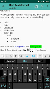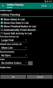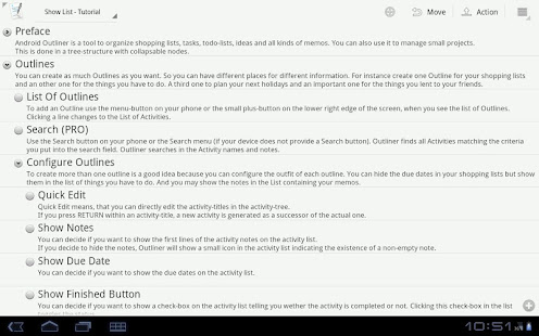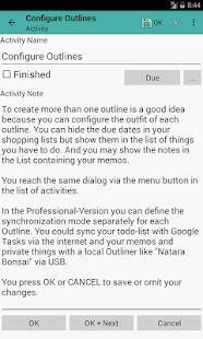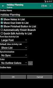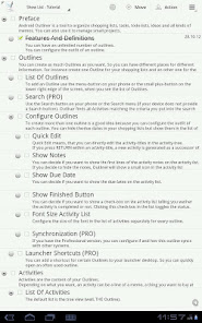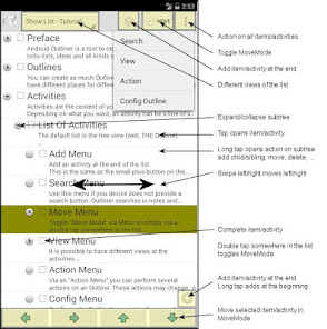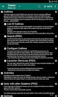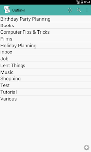 Organize shopping lists, tasks, todo-lists, ideas and all kinds of memos. Or use Outliner as a project management tool.