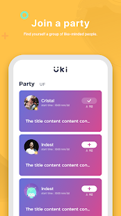 Uki is a social app based on hobbies. The simple and convenient text & voice chat system can support you to easily play games, have parties and keep communicating with your friends online.