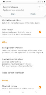 media player has support for multi-track audio and subtitles. It supports auto-rotation, aspect-ratio adjustments and gestures to control volume, brightness and seeking.