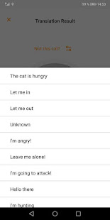 Sử dụng Máy học và Trí tuệ nhân tạo để giải mã giao tiếp của mèo, MeowTalk ngay lập tức diễn giải lời nói của mèo thành một trong mười một ý định chung của mèo; nội dung đại diện cho tâm trạng và trạng thái tâm trí của mèo và như sau: