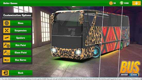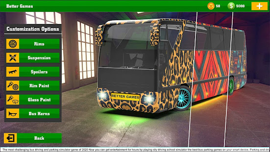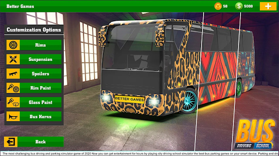 - Detailed customization of buses including wheels, paint, neon, suspension, horns, number plates, glass