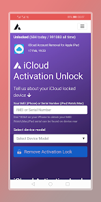 icloud và mở khóa điện thoại là ứng dụng Android giúp người dùng kiểm tra số imei và kiểu điện thoại. Ứng dụng này cũng giúp mở khóa điện thoại của bạn (Samsung, iPhone ...) thông qua imei với mức giá thấp nhất.