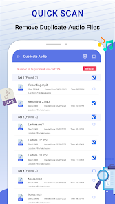 • Quét toàn bộ điện thoại của bạn và tìm các số liên lạc và âm thanh trùng lặp.