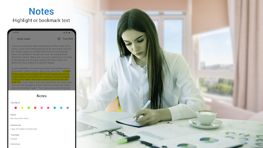 Ebook reader: ePub & audiobook reader app provides the genres store with the different book topic segments like fantasy, travel, children, history, novel, comedy and horror books library for reading. You can set a reminder and highlights your important or favourite text.
