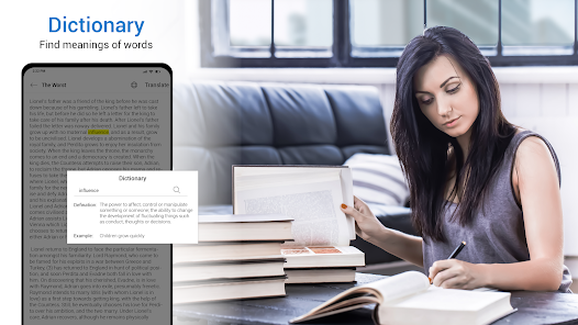 ebook reader – audio book reader app provides the best feature of translation. Translate book text feature translates your whole book text into your desired language which you feel comfortable for reading.