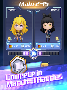 Play with your favorite RWBY characters in competitive match-3 puzzles. Solve challenging and uniquely designed puzzles by unleashing your Semblance, breaking dust in succession to create flashy combos, and blasting various parts of the board with intellect and a hint of luck. Head to battle with customizable outfits containing special abilities and characteristics to help you in battle.