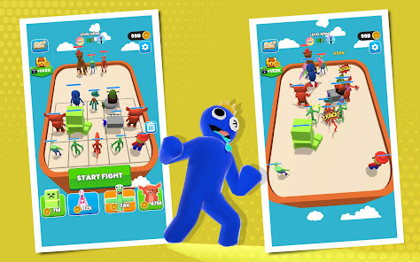 Merge Master: Rainbow Friends is an epic fighting game – get ready for an epic battle. Merge your rainbow friends monsters, improve your fighting skills and defeat ragdoll enemies in fights for survival. Play for free. Challenge yourself to become the king of merging wars!