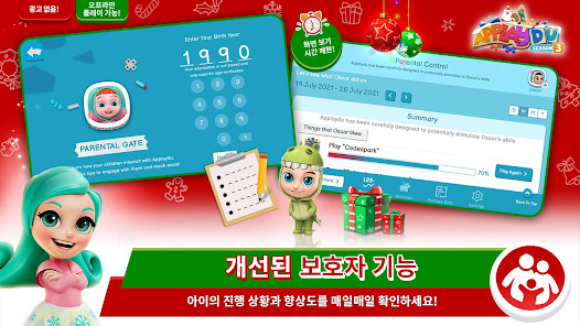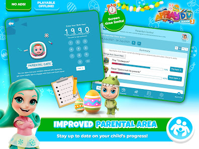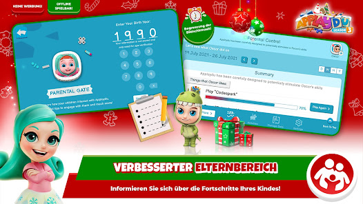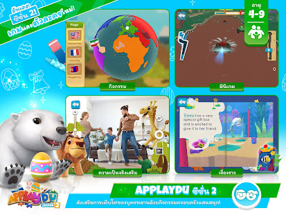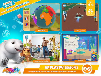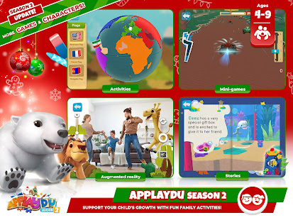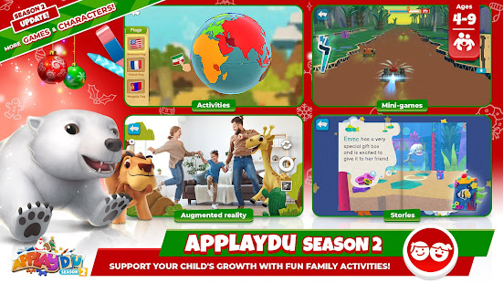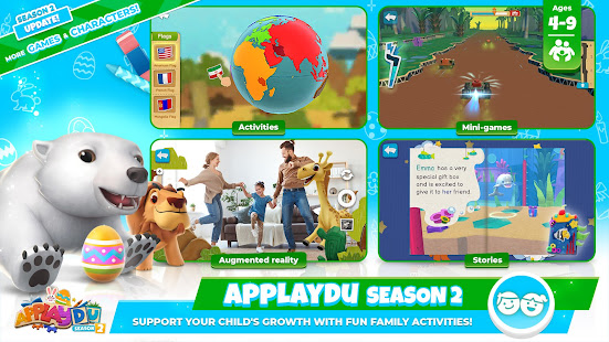 Applaydu trở lại vào năm 2022 với đầy đủ các tính năng cập nhật, nhân vật bổ sung, nhiều câu chuyện hơn và thế giới bổ sung để giúp cải thiện trải nghiệm cho trẻ em, đồng thời kích thích khả năng sáng tạo của trẻ và giữ an toàn cho trẻ khi chơi. Con bạn sẽ khám phá thế giới thông qua hai hoạt động độc đáo: Natoons sẽ giới thiệu chúng với động vật và động vật hoang dã, trong khi Space Mission sẽ cho phép chúng khám phá không gian và các hành tinh! Applaydu chứa rất nhiều trò chơi nhỏ, bao gồm một số trò chơi có chế độ nhiều người chơi, cộng với vô số nhân vật từ nhiều giấy phép để gặp gỡ và chơi cùng trong vô số câu chuyện có thể!