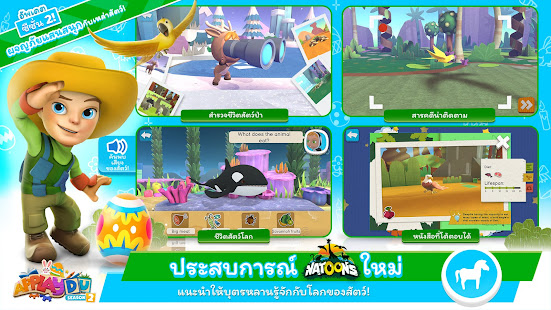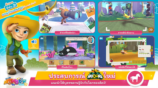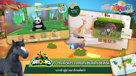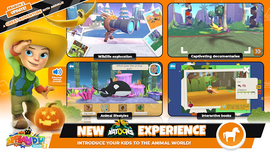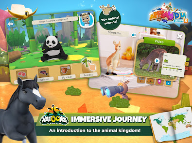 Xem con bạn trở thành những nhà thám hiểm khi chúng đi khắp thế giới để gặp gỡ những con vật yêu thích của chúng với trải nghiệm Natoons phong phú! Họ sẽ tương tác với động vật trong môi trường sống của chúng, nghe âm thanh của động vật và khám phá hành vi của chúng. Ghi lại những khoảnh khắc độc đáo từ các hoạt động của con bạn và trân trọng chúng mãi mãi trong bách khoa toàn thư về động vật của Natoons.