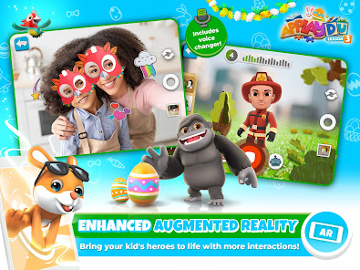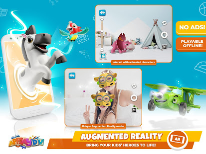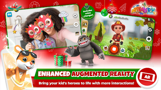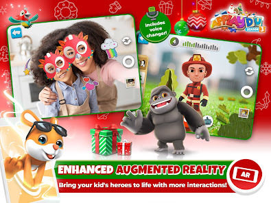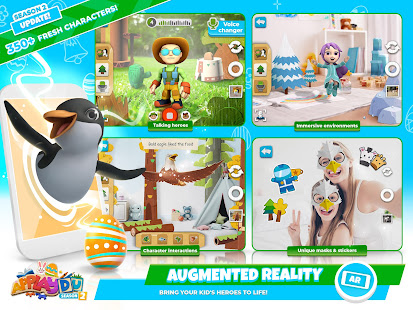Sử dụng tính năng quét 3D để đưa các anh hùng của con bạn trở nên sống động trong AR! Khi con bạn nói, các nhân vật của chúng sẽ lặp lại lời của chúng với các giọng khác nhau trong môi trường AR. Họ cũng có thể cho nhân vật của mình ăn ảo và đoán xem nhân vật của họ thích món ăn nào nhất.