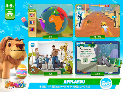 Applaydu kích thích khả năng sáng tạo của trẻ em và nâng cao các lĩnh vực phát triển khác nhau bằng cách đưa vào các chủ đề khác nhau phù hợp với trẻ em, chẳng hạn như số, màu sắc, từ vựng, địa lý và các hành tinh. Có nhiều kiểu chơi, chẳng hạn như đua xe, hóa trang thành công chúa, phiêu lưu với động vật với Natoons và thậm chí là các trò chơi nhỏ nhiều người chơi mang đến thử thách hoàn hảo cho trẻ em từ 4 đến 9 tuổi!