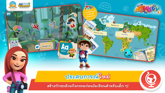 Phần 3 mang đến một loạt các hoạt động bổ sung! Hãy để con bạn khám phá hơn 30 từ vựng tiếng Anh với trò chơi từ vựng Word Explorer và thực hiện sứ mệnh du lịch tới sáu quốc gia với trải nghiệm Du lịch vòng quanh thế giới.