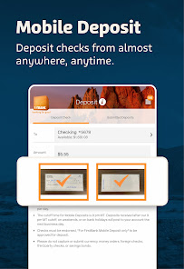 • Mobile Deposit: Deposit your check through the app. Anywhere you have a phone you have a personal FirstBank branch. Simply take a picture of the front and back of the check and submit your deposit.