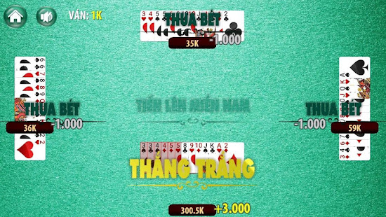 + Thuần luật tiến lên miền nam, 4 người chơi, 3 bệnh đi trước ở ván đầu tiên, chơi người về nhất và nhì ăn, 3 và bét phải là ngươi chung.