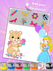 Bạn có thể tô màu trong các phác thảo hình ảnh đã chuẩn bị và cũng có thể tạo các bản vẽ gốc của riêng bạn. Nó rất đơn giản và dễ dàng ngay cả những đứa trẻ nhỏ nhất cũng có thể chơi nó. Trò chơi bao gồm rất nhiều hình ảnh đẹp của các nhân vật trong truyện cổ tích nổi tiếng và được yêu thích.