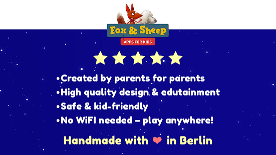 We are a Studio in Berlin and develop high quality apps for kids at the age of 2-8 years. We are parents ourselves and work passionately and with a lot of commitment on our products. We work with the best illustrators and animators around the world to create and present the best apps possible – to enrich the lives of our and your kids.