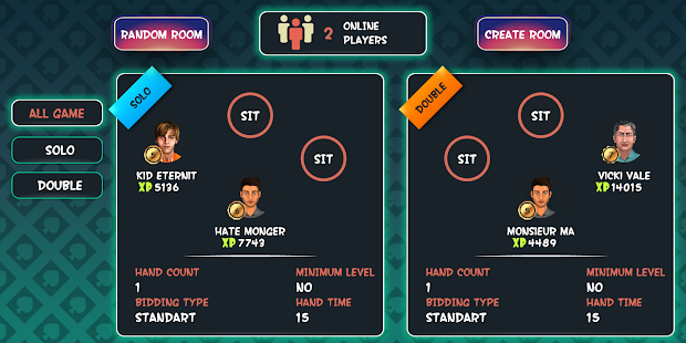 Play Spades - one of the most entertaining trick-taking card games out there! Spades is not just another trick-taking card game, it is one of the most popular card games in the USA and in many other countries. Download Spades Online plus play online and find new friends! You can play Double and Solo mode.