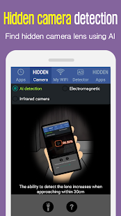 Khi ống kính máy ảnh nhỏ và không được phân biệt, điện thoại di động sẽ bị dính chặt vào vật thể nghi ngờ bằng cách sử dụng chức năng phát hiện sóng điện từ và nó sẽ phát hiện ra.