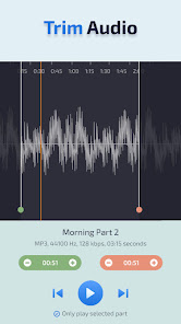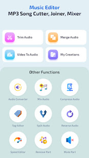 Music Editor - MP3 Song Cutter, Joiner, Mixer app has all the features you would ever want in a music editor - music cutter, mp3 converter, audio trimmer, ringtone maker, sound editor, volume booster, music mixer, music speed changer, audio merger, audio recorder, and audio compressor.