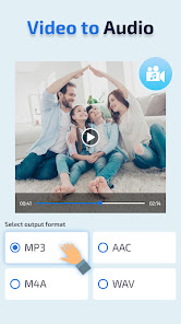 Video to audio converter that allows you to convert your video to audio and video to MP3, AAC, M4A, WAV formats.