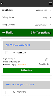 Using the Marshall Pharmacy mobile app users can QuickRefill prescriptions by scanning prescription labels, log into their Marshall Pharmacy account and refill multiple prescriptions, view/download their prescription history, and manage the personal information.