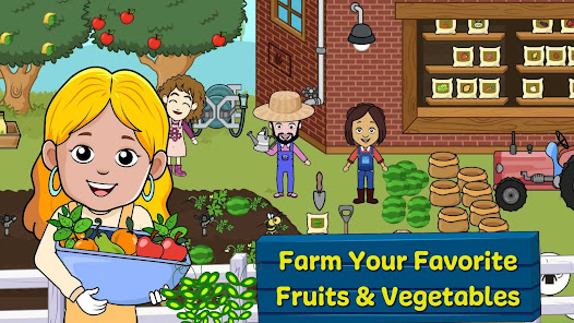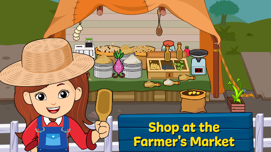 Kiểm tra các loại rau và trái cây tươi được bán tại chợ nông sản tươi sống. Nhặt trái cây và rau củ yêu thích của bạn, rửa sạch và gói chúng. Mua hàng tạp hóa hữu cơ từ cửa hàng nông trại. Trẻ em, hãy tận hưởng cuộc sống nông trại và vui chơi không giới hạn trong Làng thị trấn Tizi - Trò chơi nông trại!