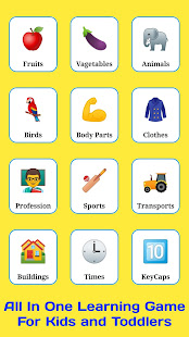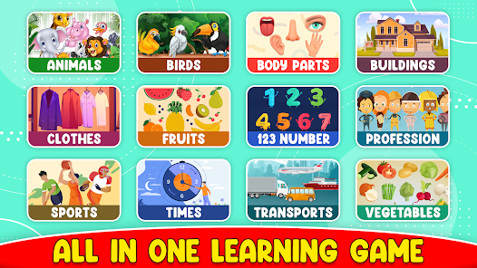 Lần cuối cùng bạn gặp khó khăn trong việc kiểm soát con mình khi nó không có việc gì phải làm là khi nào? Với ứng dụng tương tác dựa trên trò chơi giáo dục này để giúp con bạn học động vật, trái cây và rau quả, Chim, Quần áo, Nghề nghiệp, Thể thao, Giao thông, tòa nhà, Thời gian, Bảng chữ cái, Chính tả, Số, Màu sắc, Hình dạng, Xe cộ, Các bộ phận cơ thể, Ngày và Tháng, Trang tô màu, câu đố cho trẻ em và hơn thế nữa