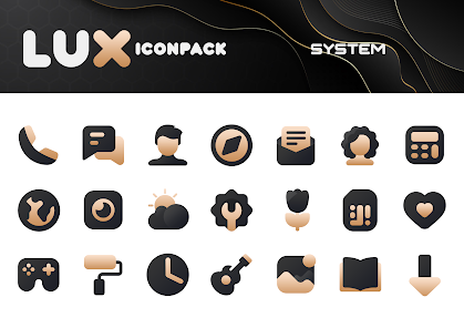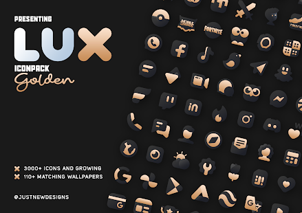 Lux Gold Icon Pack có kiểu Đường kẻ độc đáo từ cận cảnh, các biểu tượng trông giống như chúng thực sự độc đáo và khác biệt, tạo nên một cái nhìn khác biệt tuyệt đẹp trong thời đại kỹ thuật số. Có hơn 3000 biểu tượng cũng như vô số hình nền chất lượng cao để bổ sung cho giao diện với các biểu tượng tuyệt đẹp.