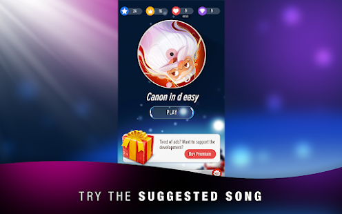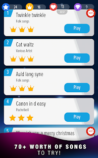 Chạm và tiếp tục chơi để có được kinh nghiệm và mở khóa nhiều bài hát hơn để chơi. Chơi các bài hát piano và đạt 6 cột mốc trong mỗi bài hát Kiếm tới 3 sao sau đó lên tới 3 danh hiệu. Tạo nhạc, kiểm tra sự khéo léo của bạn và xem bạn có thể tiếp tục chơi trong chế độ vô tận.