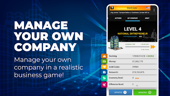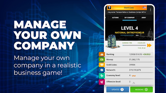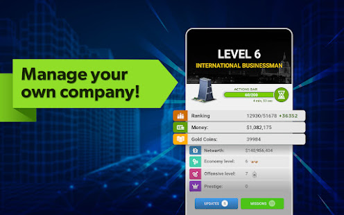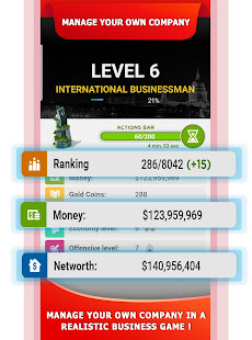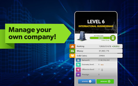 Nâng cao kỹ năng kinh doanh của bạn ở một trong những trò chơi tài phiệt mô phỏng kinh doanh hay nhất. Công ty và giám đốc kinh doanh đang cạnh tranh để trở thành nhà tài phiệt và người xây dựng tài sản giàu nhất và mạnh nhất trên toàn cầu.