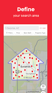 • Search homes for sale in the area of your choosing with the Draw on Map feature