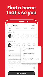 • Search homes for sale by price range, lot size, number of bedrooms and bathrooms, commute time, and more