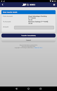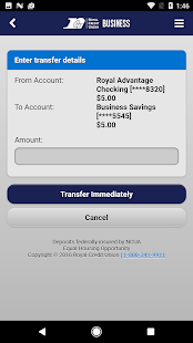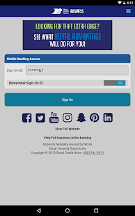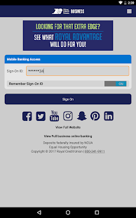 Business mobile banking is the simple, convenient and secure way to access your Royal Credit Union business accounts. It allows you to check balances, transfer funds, deposit checks and pay bills on the go!