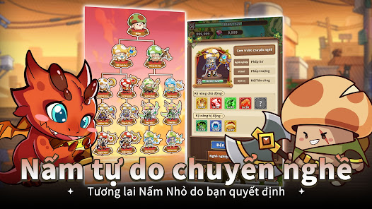 Hãy tự do phát huy chiến lược chơi game của bạn nhé! Tự do chuyển nghề chiến sĩ, cung thủ, pháp sư. Người chơi có thể chọn nghề của Nấm phù hợp với yêu cầu chiến đấu, không ngừng rèn luyện thiên phú và cường hoá kỹ năng để hoàn thành siêu tiến hoá của Nấm!