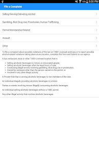 • It also has options for notifying TABC when minors are being served alcohol or employees over serving patrons drinks. Users can also report violations of alcohol anonymously.
