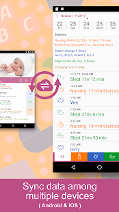 * Sync data among multiple devices for all caregivers or easy sharing of your baby’s progress with others