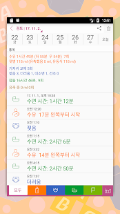 * Summary screen shows time of last diaper changing, along with feedings, and sleep schedule