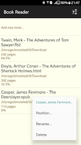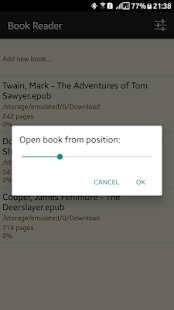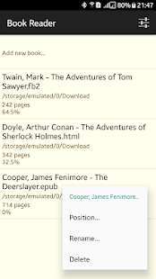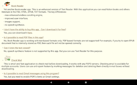 Please note that Book Reader app is working with text-based formats only. PDF-based formats are not supported! Also no speech synthesis!