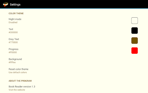 With this application you can read fiction books in the FB2, EPUB, HTML, MHTML, TXT formats. The text is viewed as a single scrollable document without dividing the pages. Main features: