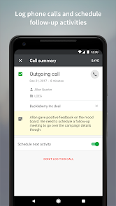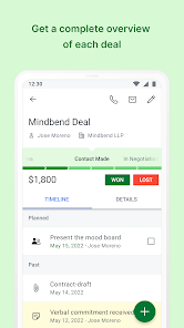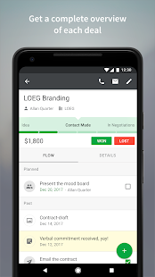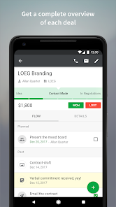 Phiên bản di động CRM của Pipedrive là một quy trình bán hàng và theo dõi khách hàng tiềm năng tất cả trong một, cho phép bạn tiếp cận khách hàng tiềm năng và lên lịch các hoạt động cũng như sự kiện cho khách hàng tiềm năng khi đang di chuyển từ một ứng dụng CRM. Trình theo dõi doanh số CRM di động này là công cụ hỗ trợ hoàn hảo cho nỗ lực tiếp thị của cả doanh nghiệp lớn và doanh nghiệp nhỏ.
