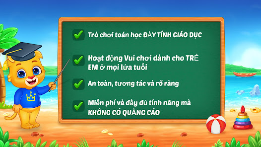 Trò chơi toán học cho trẻ em có rất nhiều game mini như đếm, so sánh, câu đố cộng, trừ và câu đố. Toán học cho trẻ em cũng đi kèm với một số tính năng giúp người lớn theo dõi và quản lý sự tiến bộ của con họ.