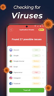 Sử dụng trình quét virút để chặn khả năng lây nhiễm điện thoại của bạn và tránh làm chậm hệ thống. Loại bỏ mọi vi rút, lướt web trực tuyến và tận hưởng việc sử dụng thiết bị di động của bạn mà không cần nghĩ đến các mối đe dọa phần mềm gián điệp và phần mềm độc hại!
