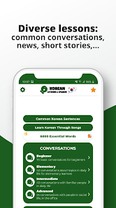 - Hơn 750 bài học về các đoạn hội thoại tiếng Hàn dùng trong cuộc sống hàng ngày với phần hội thoại của người bản xứ.