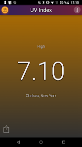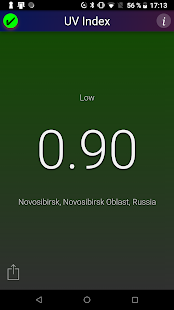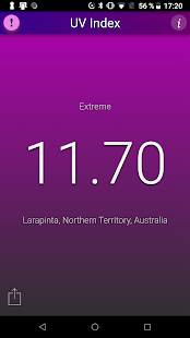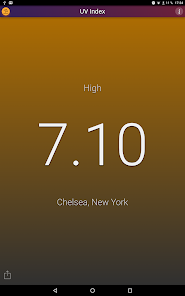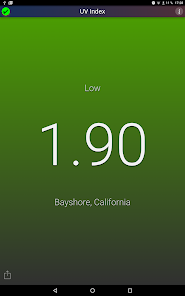This application shows the local UV Index (strength of sun light) at noon for your current location. The background color changes with the UV Index.