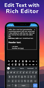 Speech To Text là một ứng dụng miễn phí giúp bạn chuyển lời nói của mình thành văn bản. Nó giúp tạo phiên âm trực tiếp thông qua việc đọc chính tả giọng nói của bạn thành văn bản. Ứng dụng này có thể ra lệnh cho bất kỳ giọng nói nào thành văn bản. Bạn có thể chuyển lời nói thành văn bản liên tục để tạo ghi chú thoại, đọc chính tả thành văn bản, ghi chú giọng nói, văn bản thoại, v.v. Bạn chỉ cần nói chuyện với văn bản bằng ứng dụng nhỏ nhưng mạnh mẽ này. Ứng dụng này rất đơn giản để sử dụng. chỉ cần nhấn ghi âm và nói sang văn bản. Ứng dụng sẽ chuyển giọng nói thành văn bản liên tục. Để chuyển lời nói thành văn bản, ứng dụng này rất tiện dụng. Vì nó sử dụng một trong những công cụ nhận dạng giọng nói tốt nhất, nó có thể điều khiển giọng nói thành văn bản rất chính xác. Ứng dụng có thể tạo bản ghi âm trực tiếp vì nó là một ứng dụng nói tiếp và bạn không cần phải nhấn lại nút ghi âm sau một thời gian. Chỉ cần nhấn ghi một lần và ứng dụng sẽ liên tục nhắn tin cho bạn nói thành văn bản. Đó là một ứng dụng đọc chính tả rồng.