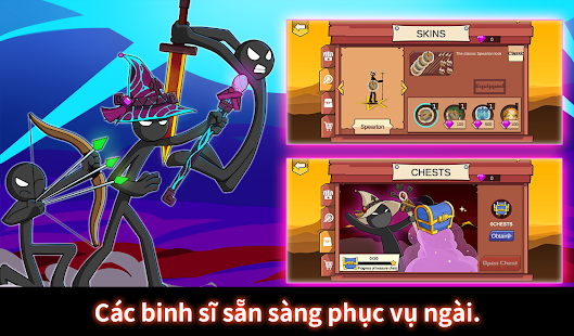 ⚔ Trong trò chơi này, bạn có thể xây dựng một đội quân, vàng của tôi, học kiếm và giáo mác, bạn sẽ có cung thủ, pháp sư và thậm chí người khổng lồ. Kiểm soát quân đội của mình, phá hủy bức tượng địch và chiếm hết lãnh thổ!