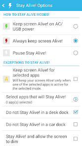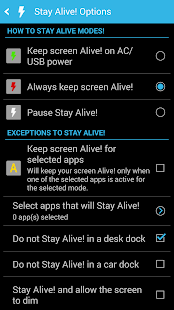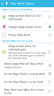 • Ngăn chặn hoặc cho phép Stay Alive! để mờ màn hình của bạn khi hoạt động