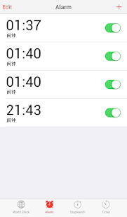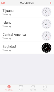 Phone X style clock with integrated world clock, alarm clock, timer and stopwatch