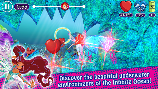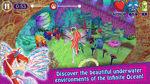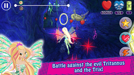 Bơi qua Trụ cột Kiểm soát làm nàng tiên yêu thích của bạn và thu thập càng nhiều trái tim càng tốt trước khi hết giờ! Cuộc đua chống Tritannus thông qua các rạn san hô và hang động, và tránh phép thuật do Trix thực hiện! Khi bạn hoàn thành khóa đào tạo của mình, bạn sẽ sẵn sàng tiếp quản Tritannus bằng các phép thuật siêu mạnh!